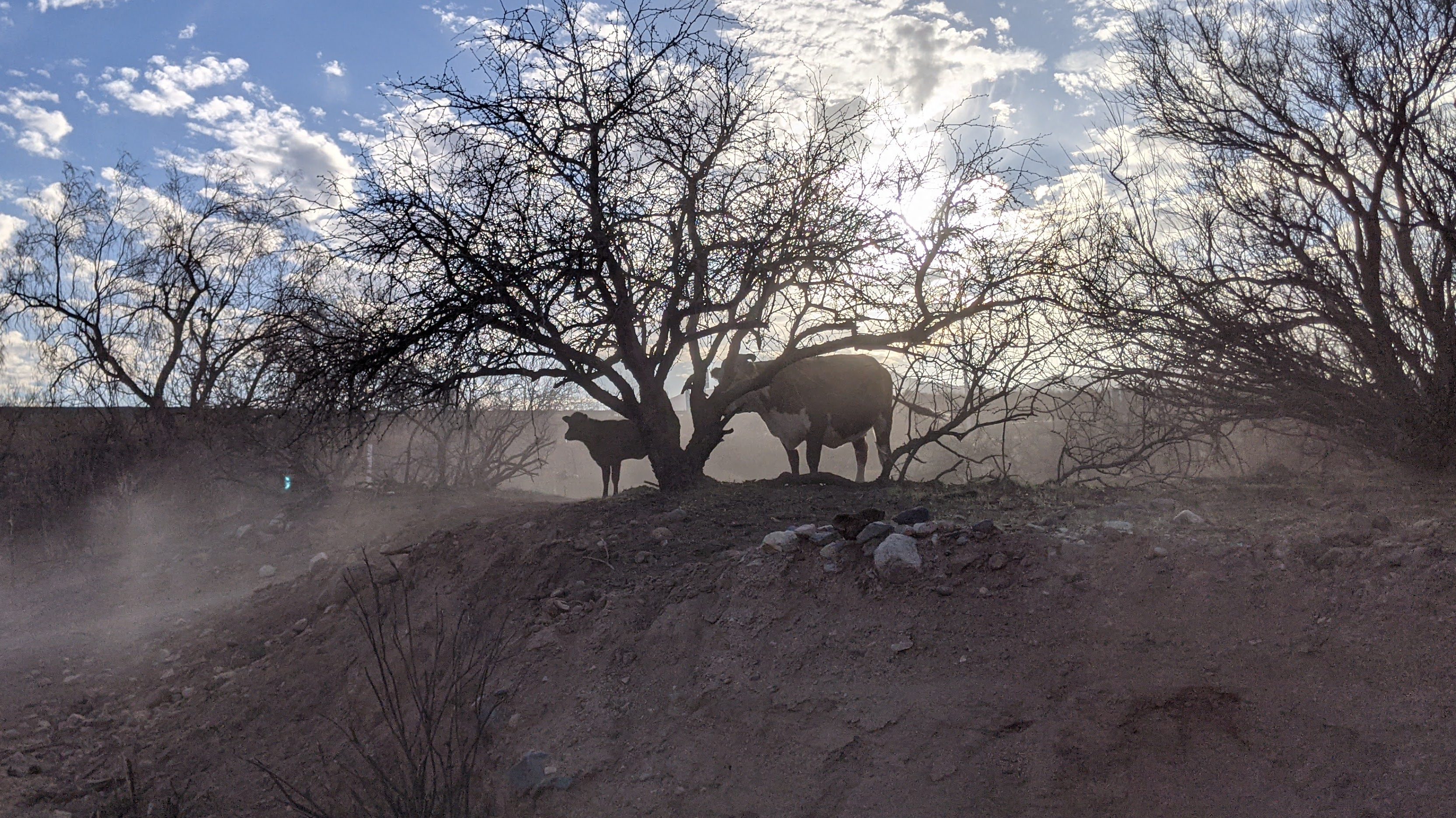 I did a 1-hour trail ride around the property. I started off leaving the stables and rode right through a huge group of cattle. More cute calves! There were also some cool and scary Texas longhorns in the group of cattle too. Some of the wranglers not guiding the horse ride were on horses doing evening watch and feeding of the cattle. Some cowboys in action.