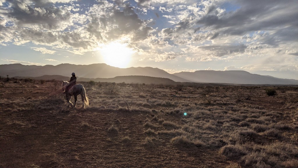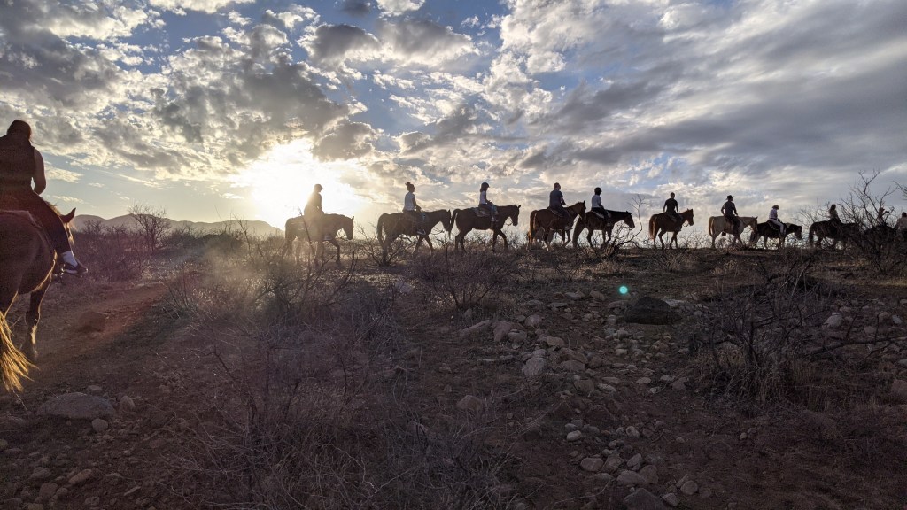 My favorite element of this trail ride was the spectacular visuals from the sunset! I got cool sun rays from the camera which created a rustic tired effect on the memory. I also got a lot of shadows throughout the trail ride that gives a really fun “wild west – settling into the campsite for the night” vibe. I love the various angles, optics, and tones this trail ride produced.