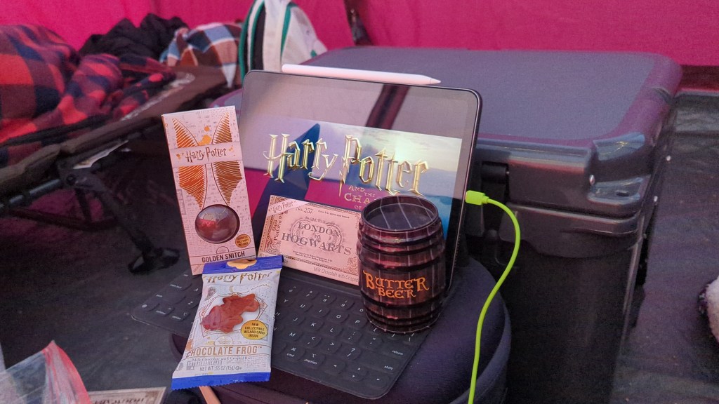 One thing my sister and I started this summer was watching Harry Potter movies to bed. This evening, we watched Chamber of Secrets. To add to the fun of watching the movie, we even bought some themed treats to eat. We had a chocolate frog, a chocolate Hogwarts Express ticket, and a chocolate snitch as well as some butterbeer-flavored gummies.
