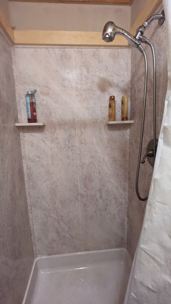 In the morning, I decided to take a shower. The most valuable thing about staying at a KOA is the ability to take a shower! The showers at Cripple Creek KOA are top-tier! It is a tight area, but fully enclosed space that has a shower area with tile and an area to change clothes. The showers are in the main building where you checked in. There is a hallway where each of the shower doors opens to and at the end of the hallway are the doors to the men’s and women’s bathrooms. I really liked that there were four showers with no gender assignment so anyone could use any shower at any time. I had shown up at 7AM and saw all four were open so I ran to the bathroom really quick. When I was done, only one shower was left open!
