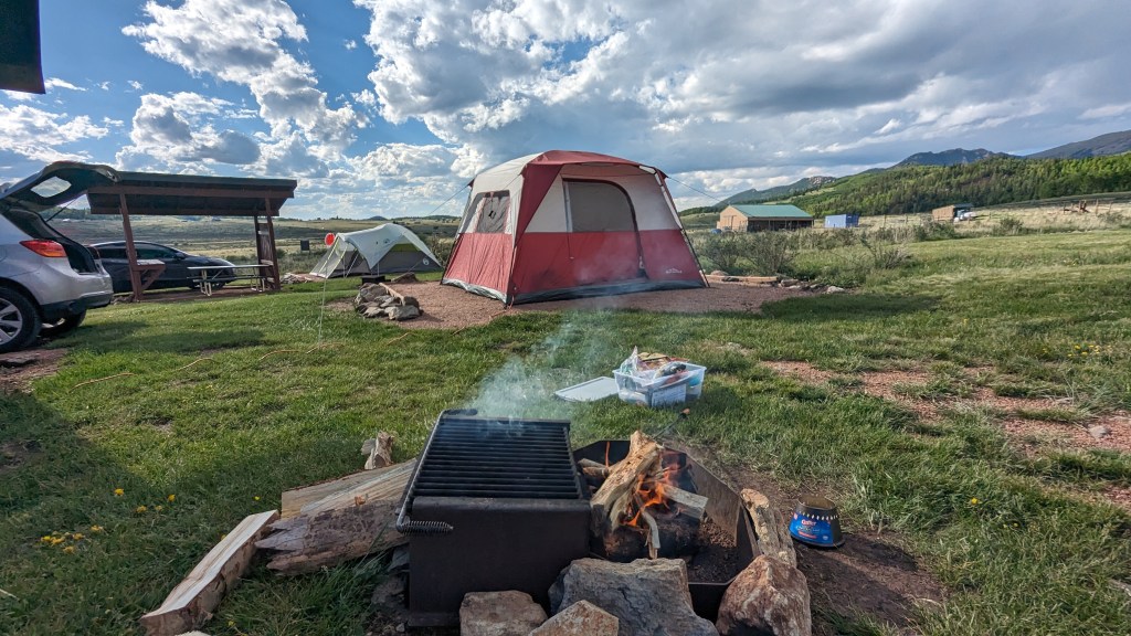 We treated ourselves to a great meal at the Alamosa Chili’s. My sangria-margarita never tasted so good! I also got some delicious ribs and finger-licking crispy chicken tenders. We went back to the KOA and I thoroughly enjoyed cooling off in the pool! Needless to say, we were too tired for a campfire that night and we had leftovers from our late lunch that we had to eat anyway.