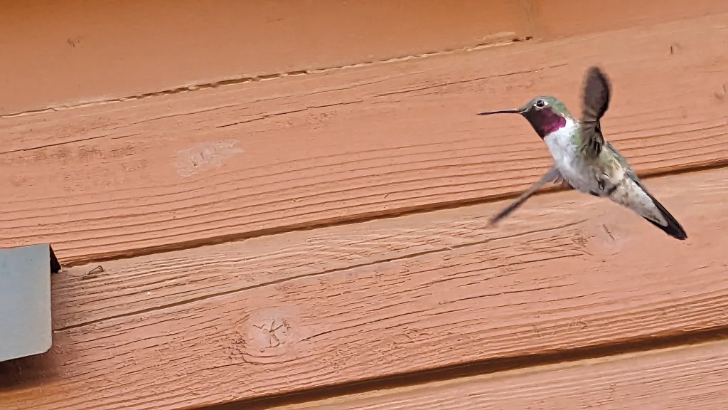 It was after dinner that I ran to the bathroom in the main building. When I left the back entrance, I noticed a hummingbird feeder with about 4-5 hummingbirds buzzing around it! It was such a fun experience to see so many and be able to get some cool pictures as well!