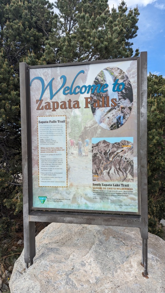 At the top of the road, we got to the parking area for the Zapata Falls trailhead and a mind-boggling view of the Great Sand Dunes! It was unreal how “great” the dunes are by seeing how large and how much acreage it takes up. We then proceeded to climb and hike the trail up to Zapata Falls. The falls are cute but aren’t too impressive. If you are wanting a little challenge with a steep grade and rocky terrain, this one is for you!