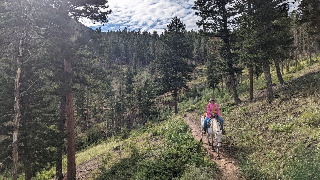 The Deer Mountain trail takes you 2 miles up with a 1000 feet elevation gain. Then another mile across the mountain to the true peak of the mountain. The mountain top is a whopping 10,000 feet in elevation – just roughly 500 feet short of two miles. There is, in total, a roughly 1,350 feet elevation gain, and the average (meaning people who hike regularly) time of completion (out & back) is 3 hours. Imagine if you are not a regular hiker, you’re looking at 4-5 hours to hike this mountain. But what if I told you there is a trail riding stable located at the base of Deer Mountain right at the Fall River Rd RMNP entrance? National Park Gateway Stables offers a 6-hour trail ride that goes to the top of Deer Mountain by horse.