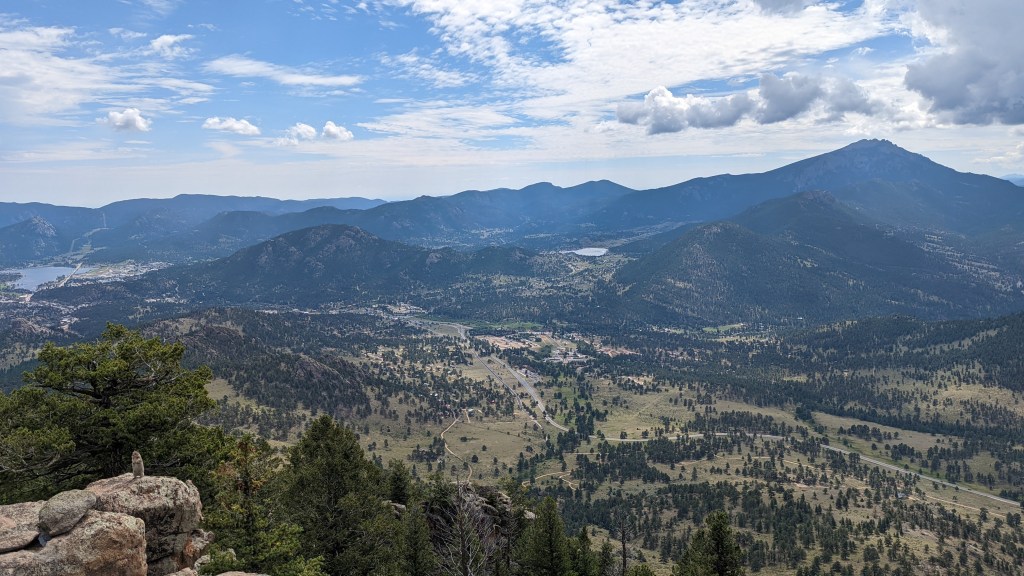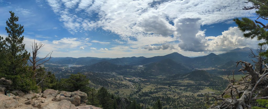 The peak of Deer Mountain is where you will have lunch and get a break for 30 minutes. The horses themselves can’t take you to the top. There is a horse post at the foot of a short climb that goes to the peak. I’d say after sitting on the horse for 3 hours while they climbed the summit, a quick 10-minute climb is nothing. Believe me, it is worth the spectacular view at the top! From the Beaver Meadows entrance and Mary’s Lake to the Stanley Hotel and Lake Estes. You see the whole of Estes Park Valley and it is breathtaking!