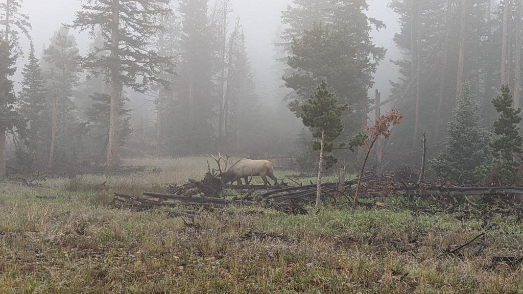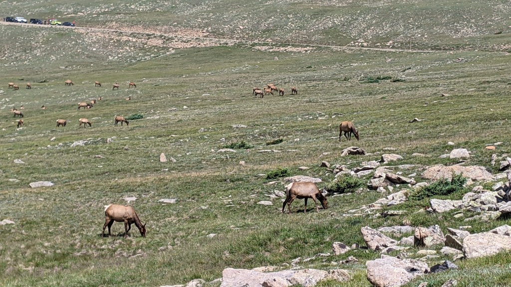 This is by far the most interesting time of the year for RMNP. Your best chance of seeing elk is this time of year. The male elk (bulls) will “bugle” to gather a harem of female elk (cows). Bulls with luxurious antlers and loud bugles will reward them with larger harems. Be careful though! A distant bugle can easily get closer, and an elk can pop out of nowhere. You are more likely to see bulls and their harems in meadows like Sheep Lake and open higher elevation areas like the huge open space next to Forest Canyon Overlook.