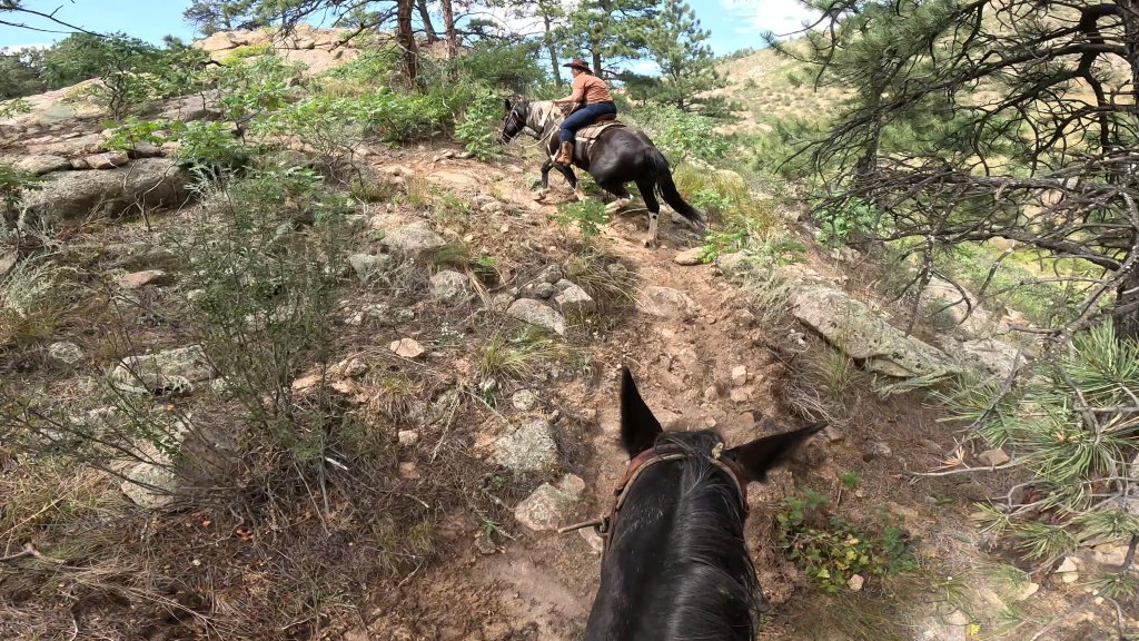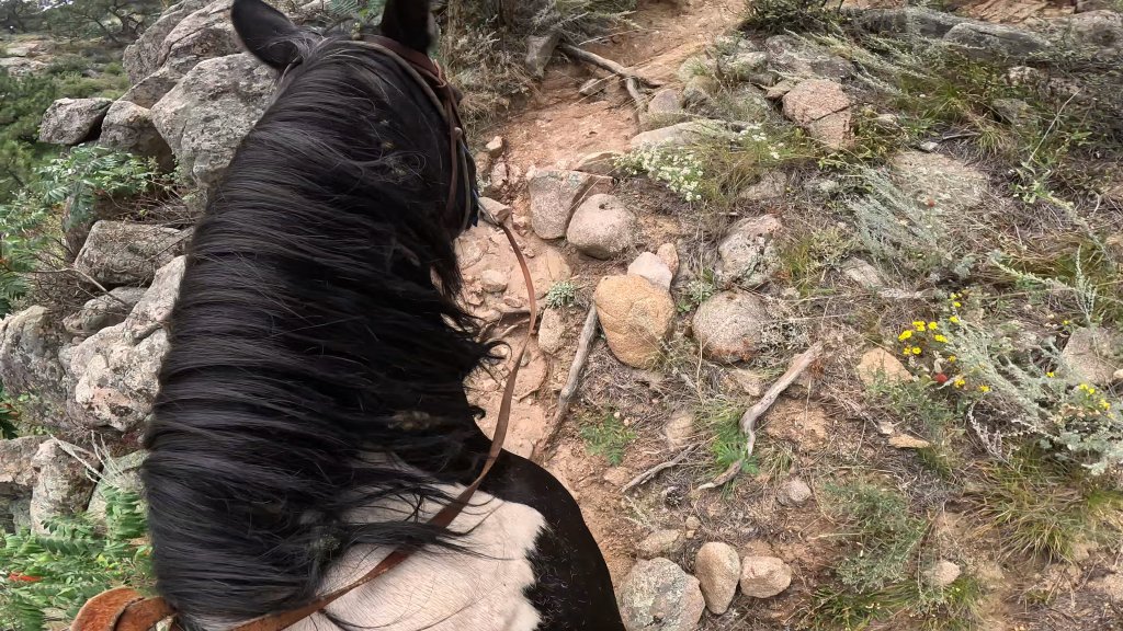The main event of the trail to the summit is a rocky hill where you will need two hands to hold on to the horse and the saddle. One tip in general for climbs like these is to grab a chunk of the horse’s mane. It can give you a quick way to stay forward to help the horse balance as it climbs upward. Do not hold the hair for long as the horse does feel some pain after prolonged pulling. This is a controversial thing in the horseback riding community between old-fashioned practices and new-aged science that suggests differently. However, the new-age science advice still needs more studies performed. Overall, I only ever use the mane for very tough terrain so that I don’t fall off and put both myself and the horse at risk on the dodgy terrain.